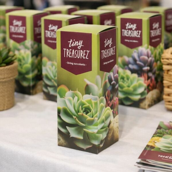 Tiny Treasurez® zijn levende mini-succulenten, als kleine schatten uit de natuur. Deze unieke plantjes hebben weinig verzorging nodig, overleven langdurige droogte en blijven maanden- tot jarenlang mooi – een krachtig symbool voor groei, veerkracht en duurzaamheid.