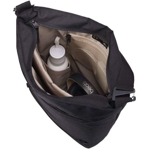 De Case Logic Invigo converteerbare draagtas heeft een verfijnd, elegant ontwerp met doordachte organisatorische functies. Hij heeft een buitenkant van 100% gerecycled 600D polyester en een voering van 150D polyester. Het gewatteerde laptopvak beschermt een laptop van 15,6 inch en in de tablethoes past een tablet van 12,9 inch. Berg de gevoerde rugzakschouderriem op om de tas als draagtas te gebruiken of maak de hoofdschouderriem los om de tas als rugzak te gebruiken. Als de rugzak in de draagmodus wordt gebruikt, kunnen de rugzakriemen netjes worden opgeborgen in een klein vakje op het achterpaneel. Een ritsvak op het voorpaneel biedt eenvoudige opbergruimte voor kleine accessoires en snelle toegang tot essentiële items. In het hoofdvak zit een speciaal opbergvak voor een waterfles en op het achterpaneel zit een groot opbergvak om nog meer spullen in op te bergen. De tas is ook voorzien van een doorvoerband voor bagage waarmee je de tas aan je bagage kunt bevestigen, zodat je moeiteloos kunt reizen.